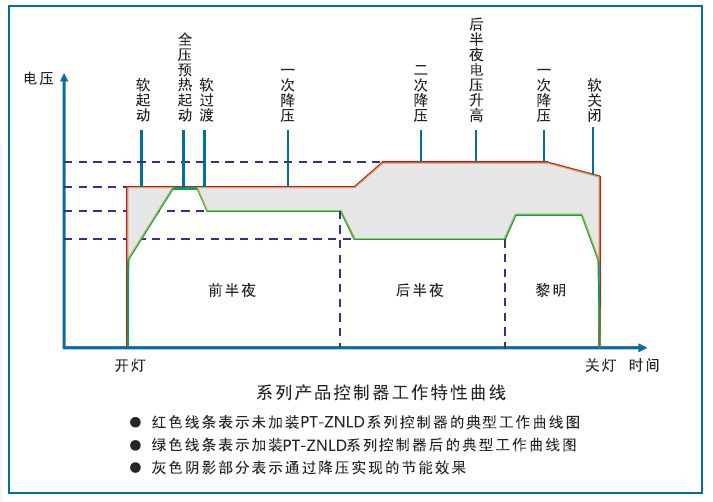5、能实现全夜灯及半夜灯控制,且有后半夜再降压调流功能,节能效果更加。